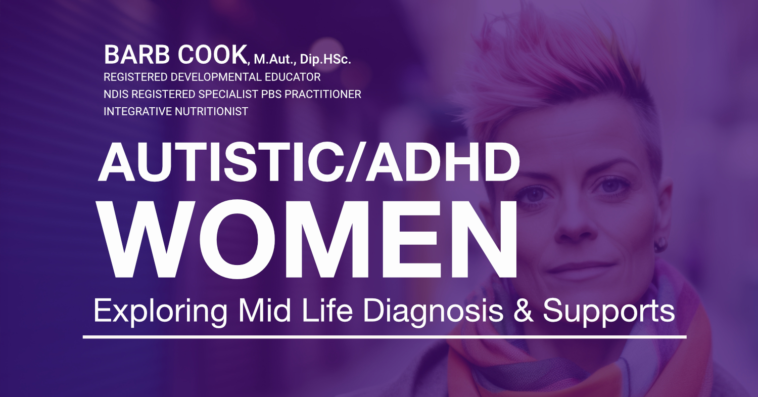 In this on-demand course, Barb Cook, M.Aut.(Ed), Dip.HSc.(Nut) — Registered Developmental Educator and Integrative Nutritionist — draws on lived experience, clinical insight, and current research to guide participants through the unique journey of late diagnosis.